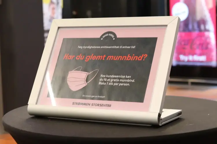 I Lillestrøm kommune ble det i november innført regler om bruk av munnbind på butikker og i kjøpesentre. Siden den gang har Strømmen Storsenter delt ut rundt 100.000 munnbind fra Kundeservice, fra vekterne og i tillegg fra servicevertene ved senterinngangene på lørdager og andre hektiske dager.