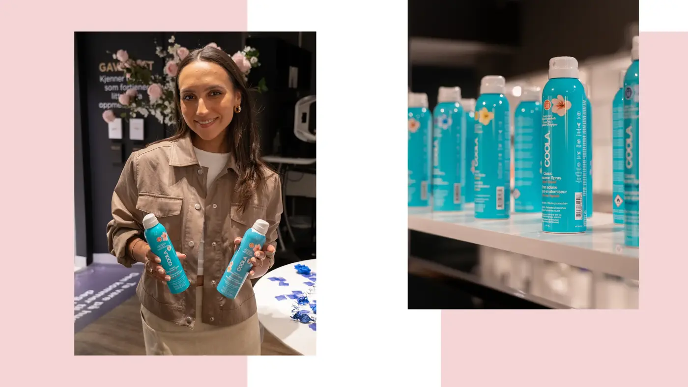 Hun tipser også om glow-solkremen fra Coola, som gir en superfin glød og kan brukes under sminke.