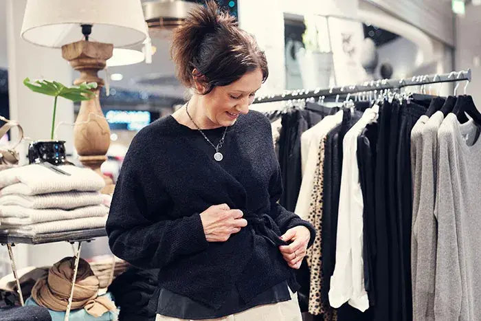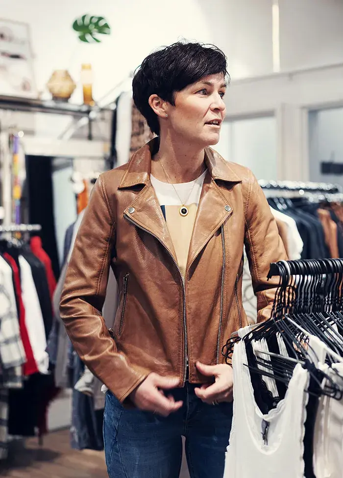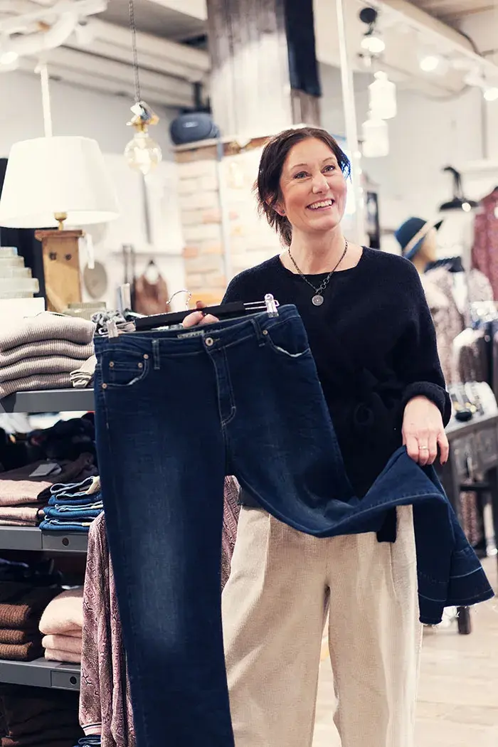Det første vi gjerne spør kundene våre om er hva de har fra før av og hva de ønsker seg. Det er verdt å tenke over når man ønsker å fornye garderoben. Basisplagg som er fine å ha i skapet, og som du kan mikse på tvers av hverandre, er skinnjakke, olajakke, skjorter og jeans. Disse plaggene kan bygge på hverandre. I tillegg kan du gjerne velge å ha mer fargerike bluser og T-skjorter som kan byttes ut oftere og som fungerer til de andre klærne i basisgarderoben. Et godt jeans-tips er å finne deg noen favoritter! Finner du en jeans som virkelig funker, kan du heller kjøpe flere vasker av den slik at du har den i ulike versjoner.