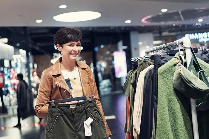 Farger, blant annet! Det kommer mange fine klær i blåtoner, rosa, beige og grønntoner. Grønnfargen er gjerne safarigrønn, som vi blant annet ser på cargobukser. Ja, cargobukser får vi inn mye av, den er enda kulere i år enn i fjor. Den litt maskuline stilen i form av dresser og oversized bukser og blazere fortsetter, sammen med skinnjakken. I tillegg er vi stadig mer opptatt av naturmaterialer, noe som har gjort lin til et populært materiale. Her trives vi godt i linskjorter og linkjoler.