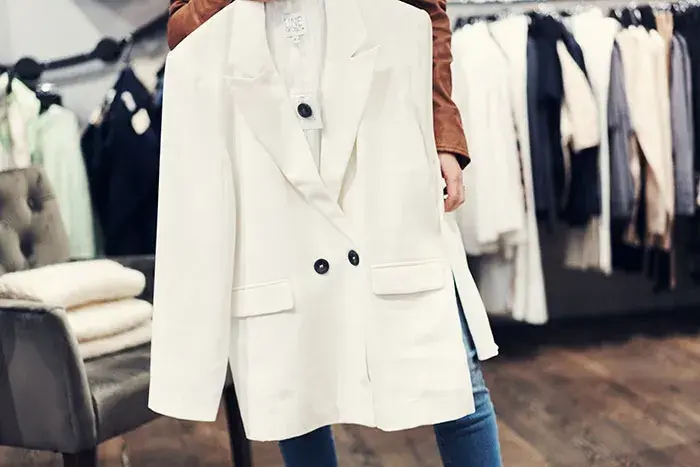 Birgit: Det blir nok en hvit oversized blazer, enten med matchende bukser til eller med noen slitte jeans og kule boots til. Denne dressen er fra Line of Oslo.