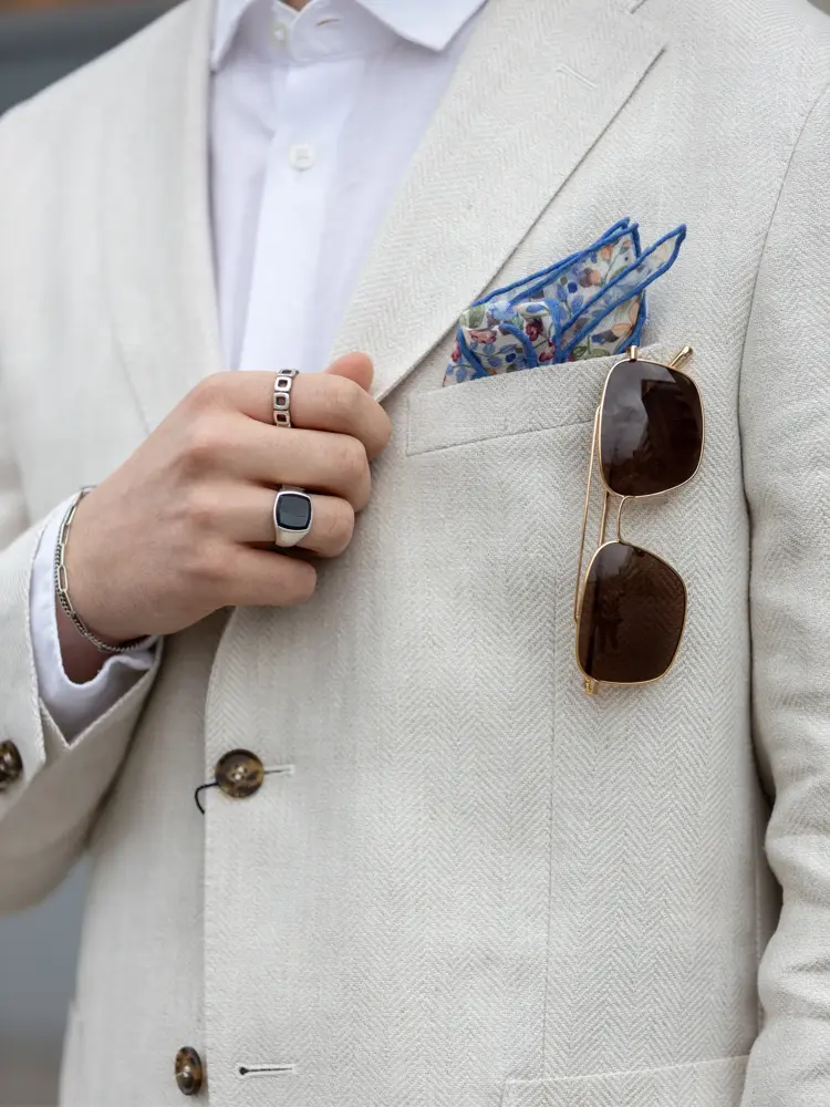 – Blazeren er det perfekte plagget for å dresse opp og ned. Den kan du style med alt fra chinos og pensko til jeans og hvite sneakers, så er du pent og kult kledt uansett anledning. En populær detalj akkurat nå er hankies, det lille halstørkleet som kan brukes på ulike måter. Veldig stilig å pynte opp antrekket med, sier Kaia.