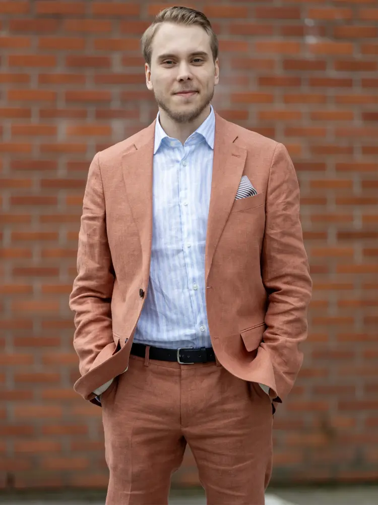 – Denne dressjakka er laget i ren lin, og designet i klassisk slag med to knapper i front. Den kommer i flere unike og fine farger som passer til alle anledninger, enten du skal i sommerbryllup, hagefest eller ønsker en smart, casual stil på ferie. Den er super å style med en lett pustende skjorte i lin eller bomull, eller en ensfarget T-skjorte for et mer avslappet uttrykk.