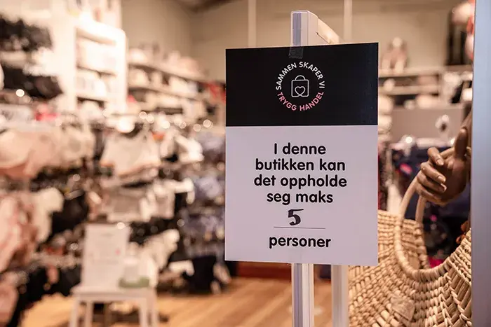 – Vi ønsker jo blant annet å kunne gi kundene hjelpen de trenger i prøverommet, samtidig som vi holder avstand. Med andre ord går det med noen liter antibac! Vi har i tillegg et enda større fokus på renhold, og har satt begrensninger på antall kunder som kan være i butikken samtidig for å opprettholde avstandsreglene, forteller hun.