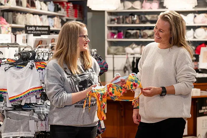 – Nå flyr badetøyet ut av butikken! Vi har mye fint som også passer for staycation – for ikke å snakke om Romerikes største utvalg av BH-er, forteller Elisabet, som nå sjonglerer god service med nøye smittevernstiltak.