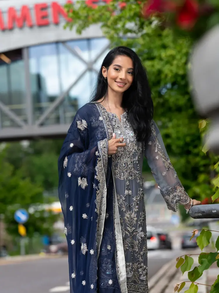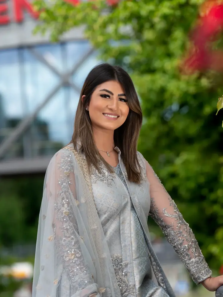 – Antrekket jeg pleier å benytte er pakistanske tradisjonelle klær. Jeg syns de er helt sinnssykt fine, og gleder meg alltid til å bruke de. Jeg pleier å bruke et nytt antrekk hvert år, som mamma pappa pleier å kjøpe til alle, slik at følelsen av Eid og tradisjonen i familien bevares. Antrekket mitt pleier ikke å være veldig pynta. Jeg liker å ha det elegant og simpelt med noen smykker og litt ekstra sminke.