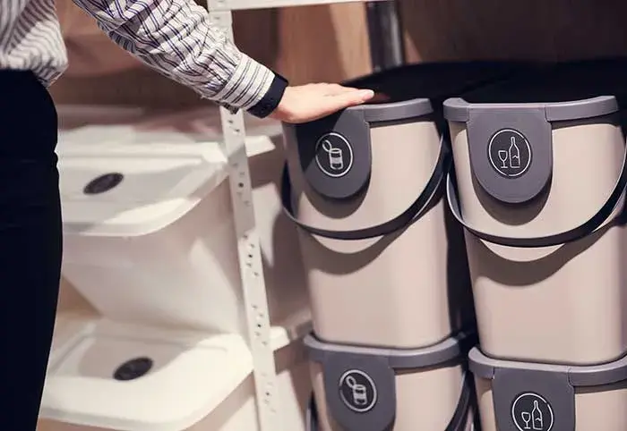 Vi får stadig smartere og finere løsninger for gjenvinning og resirkulering og opplever større pågang på dette fra kundene. Disse boksene kommer i flere ulike størrelser, med tydelige symboler og ser såpass fine ut at de kan stå fremme. Den lille er perfekt å ha batterier eller lyspærer i.
