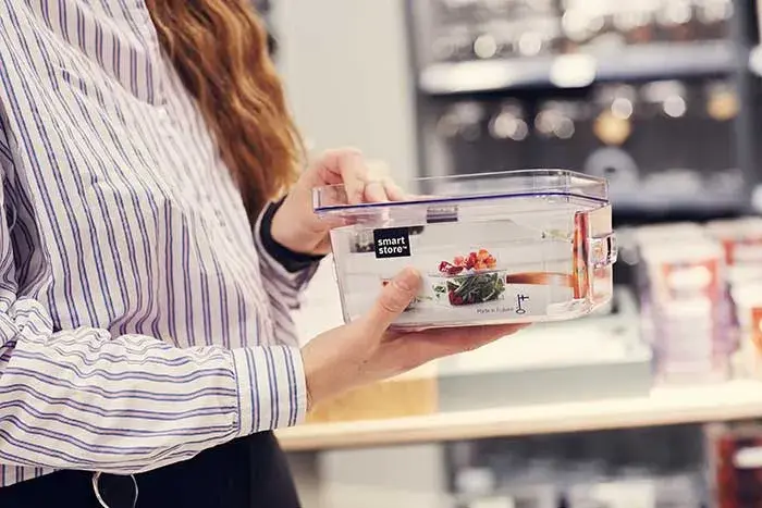 Jeg har kastet meg over kjøleskapet og kjøpt inn smart-store-bokser og smarte holdere, som vinholder og eggeholder. Det er helt genialt og har gitt meg en skikkelig aha-opplevelse! Nå ser jeg alt som er i kjøleskapet, som grønnsaker og særlig pålegg, og får mye mindre matsvinn. Det er også mye hyggeligere å sette frem boksene ved frokostbordet nå enn å ha frem all emballasjen. I tillegg kan de stables på smarte måter, slik at jeg utnytter plassen best mulig.