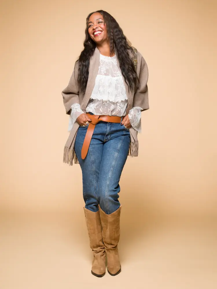 For dem av oss som husker det, så kunne denne stilen lett tilhørt it-jentene Sienna Miller eller Olsen-tvillingene for tjue år siden. Den gang Boho Chic ble et begrep, og alle ville ha poncho eller cape og jeans oppi høye, brune cowboystøvler. Nå er hele pakka tilbake, og helst i kombinasjon med flagrende bluser – hvite og lette, med volanger og blonder. Det bohemske uttrykket understrekes med store solbriller og statement-smykker i gull. Beltet er igjen en en viktig detalj og må gjerne ta oppmerksomheten. Og selvfølgelig, dongeribuksa. Enten du kjører jeans med mye detaljer eller en helt enkel vask, baggy eller smal: Stapp den oppi støvlettene, og gå høsten stilsikkert i møte.