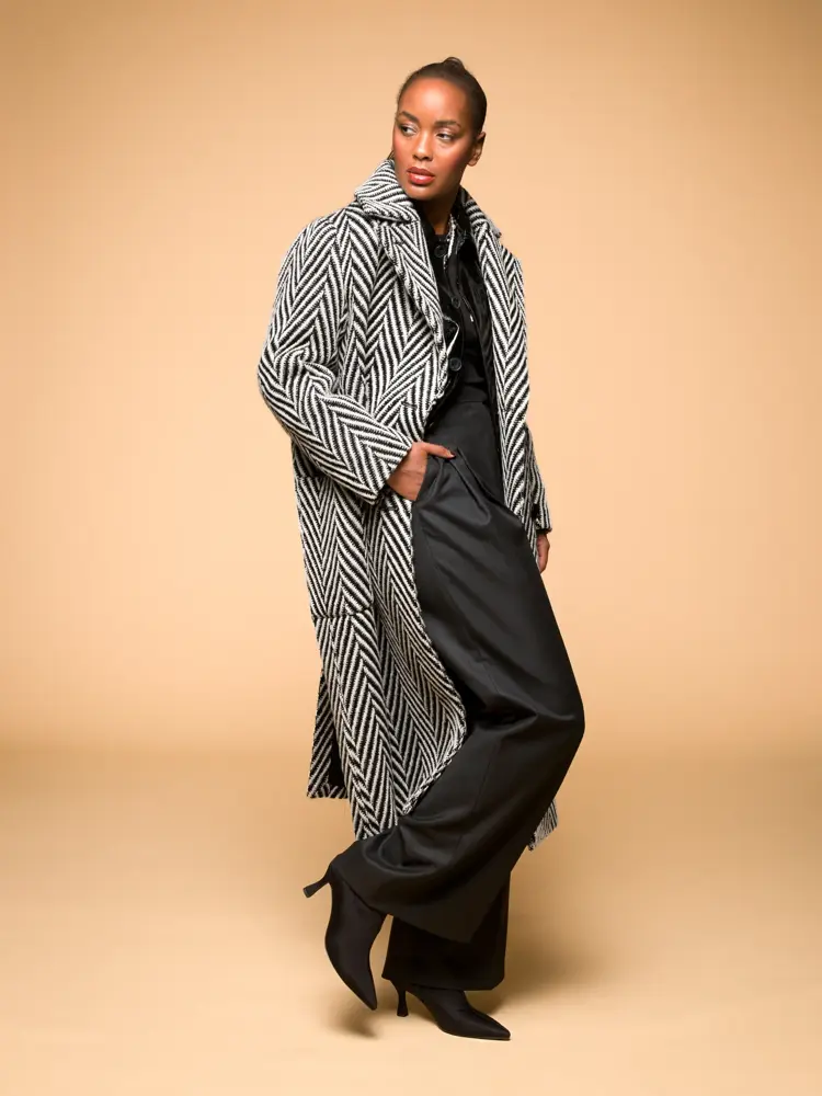 Sånn går vi gjerne høsten i møte! Kåpen i chevron-mønster er like klassisk som kul, og kan hentes frem igjen hver høst. De vide dressbuksene hopper vi i både til hverdags og fest, og det samme med skoene. Superfresht, og enkelt! Kåpe fra InWear, Olivias Verden, kr 4.099,- // genser fra Kappahl, kr 299,- // dressbukse fra By Malene Birger, Høyer, kr 3.299,- // boots fra Stockholm Design Group, Grændsen Skotøimagazin , kr 1.299,-