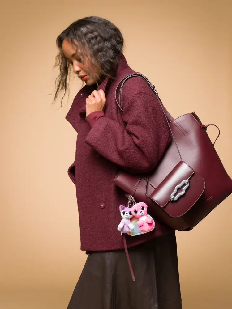 Charmsene er tilbake! Nå skal det dingle og dangle fra veskene, og jo mer jo bedre. Stor tote fra Mulberry, Follestad, kr 16.500,- // liten veske fra Mulberry, Follestad, kr 15.200,- // regnbuecharm fra Monson, kr 129,- // bamsecharms fra Ark, kr 69,-. Ton i ton er superaktuelt, og de varme nyansene vinner. Langermet topp fra Bik Bok, kr 259,- under jakke fra Marie Philippe, Match, kr 1.999,-