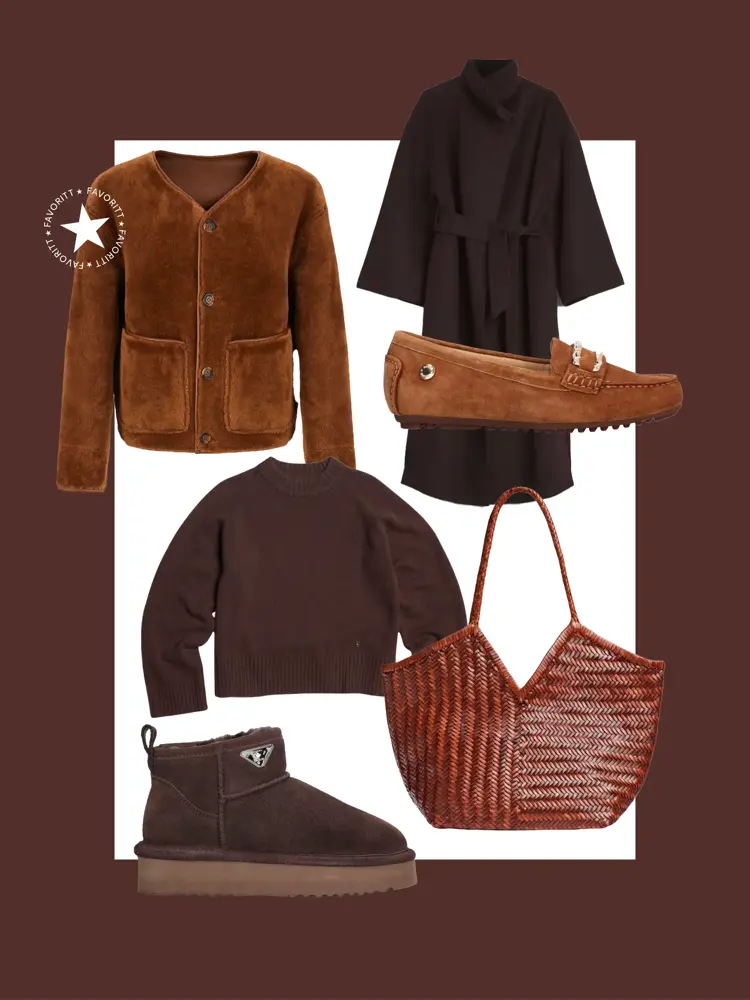 Varm sjokolade? I høst vil ha den både i koppen og garderben. Jakke i vendbar shearling fra Urbancode hos Companys, brun kåpe fra Bik Bok, loafer fra Scorett, strikkegenser fra Holzweiler hos Me & My Cousin, veske fra Carla Jade hos Me & My Cousin og sko fra Canada Snow hos Scorett.//Pimp opp veska med et lekkers sjal, for en sofistikert og trendy look. Veske fra Anine Bing hos Follestad og tørkle fra Marc Jacobs hos Høyer. Den brune kåpa er fra By Malene Birger hos Høyer.
