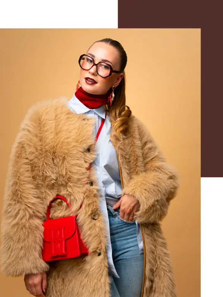 Er du en av dem som gikk amok med røde detaljer da fargen plutselig poppet tilbake i motebildet? I høst får du full uttelling for investeringen. Fuskepelsen er høstens store må-ha, og denne sesongen ser vi den i alle varianter. Denne er fra Urbancode hos Message, og er stylet med veske fra By Marlene Birger hos Høyer, briller fra Brilleland, jeans fra Camilla Phil hos Høyer, skjorte fra Høyer, skjerf fra Message og ørepynt fra HM