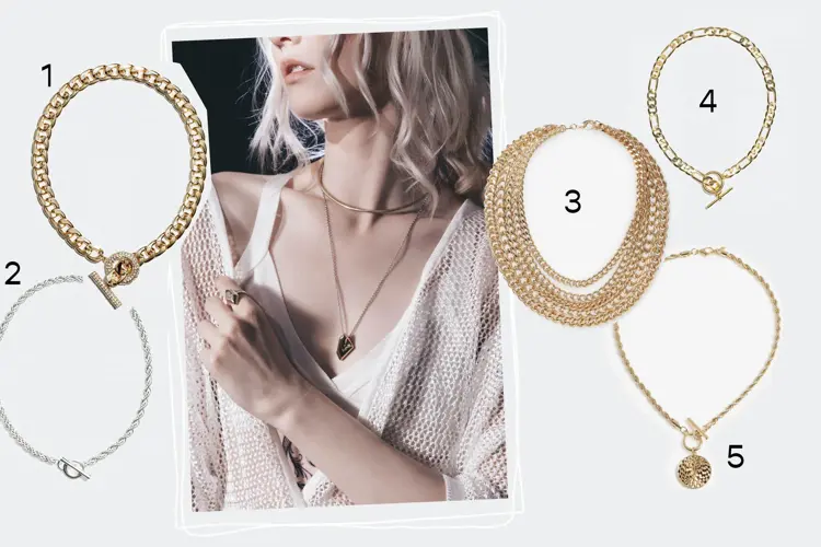 – Her kan det være fint å sprite opp antrekket ved å bruke litt accessories. Chains for eksempel, vil bidra til å gjøre antrekket mer glamorøst. Statement-smykker eller andre kule detaljer i varme gulltoner passer perfekt til de nøytrale fargene!