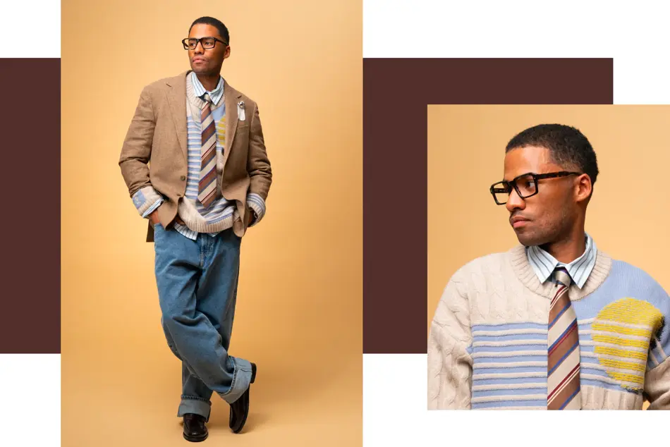 – Dette er jo akkurat sånn jeg går på jobb! Spot on, sier Theodor fra Høyer om antrekket stylist Linda Murstad har plukket ut til ham.