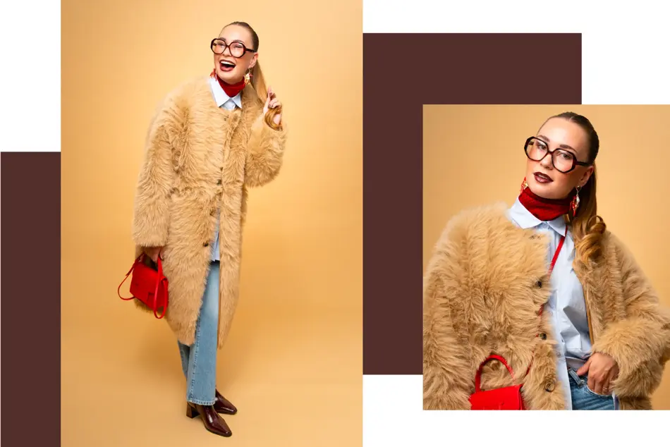 – Dette var veldig gøy! Vanligvis er det jo jeg som sminker modellene, men nå var det min tur til å bli stylet og tatt bilder av. Det var en ny og morsom opplevelse. Jeg elsket antrekket stylisten plukket ut til meg, og ikke minst kombinasjonen av fargene. Jeg kunne gått med alle elementene hver for seg, men hadde nok aldri tenkt på å sette dem sammen på denne måten. Det var classy og tøft på samme tid, utrolig spennende og kult, sier hun.