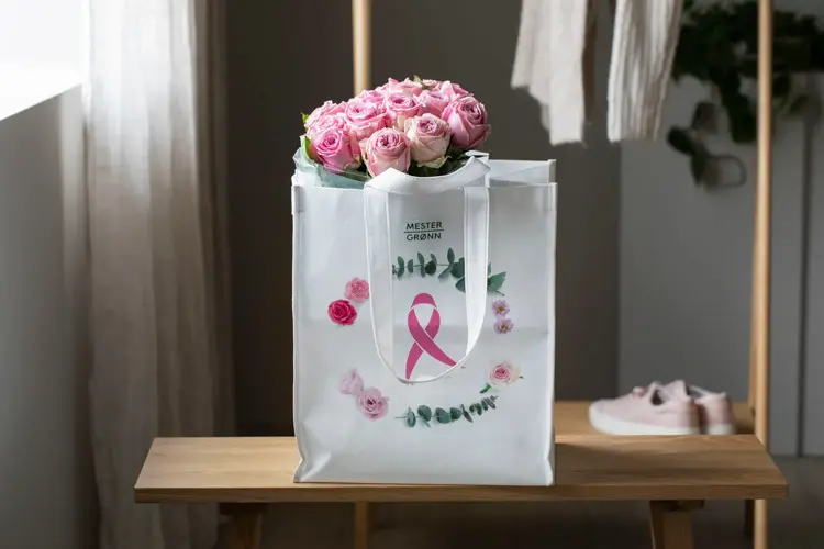 Hos Mester Grønn får du i tillegg til Rosa sløyfe-buketten kjøpt roser, epledrikk, sjokolade, telys og miljønett, der en del av salgsbeløpet går til aksjonen. Du får også kjøpt Kreftforeningens Rosa sløyfe som i år er designet av motefavoritt byTiMo.