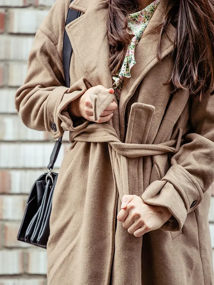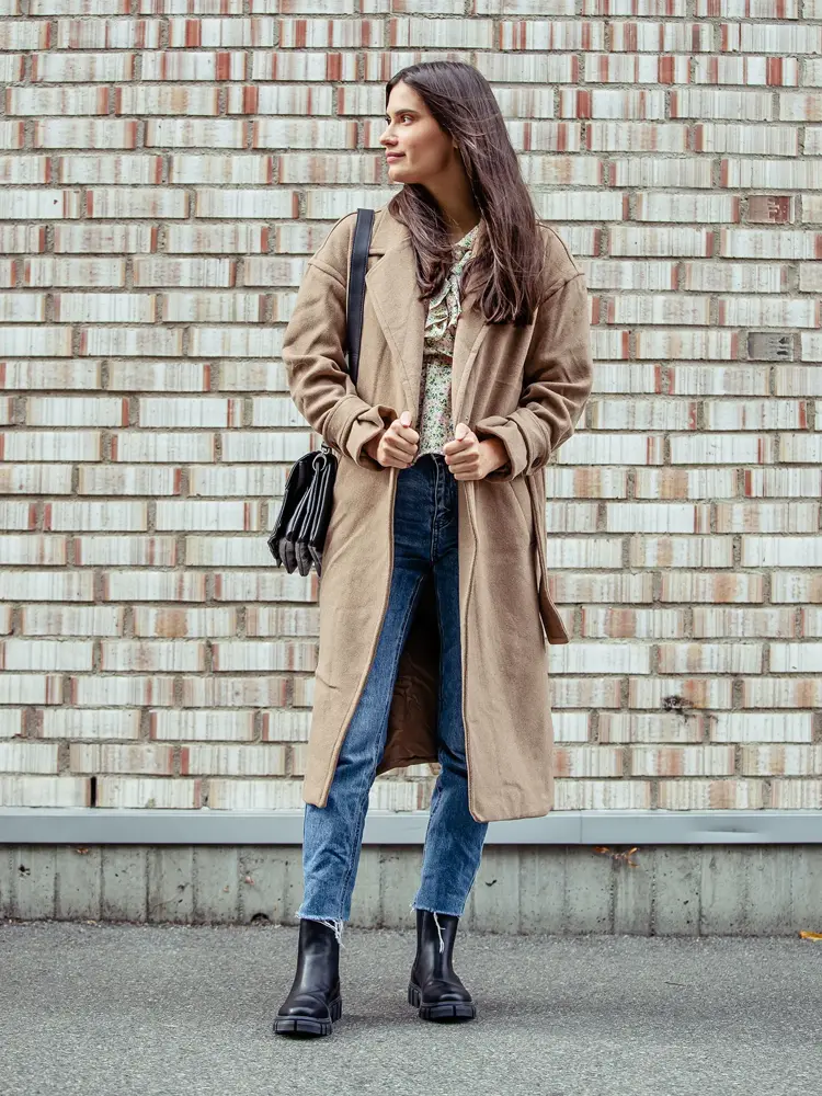 – Dette er en utrolig fin kåpe som inneholder ull, noe som regulerer temperaturen og holder deg god og varm hele høsten. Den er allsidig og funker like fint til hverdags som over kjoler. Jeg liker at den kan styles til litt tøffere looks, ved å ha den åpen med lue, hullete jeans og store skjorter med strikkevest over. Men den kan også være classy og brukes til selskapskjoler, lukk den igjen og bruk støvletter til. Vi får inn mange kåper i bruntoner denne høsten og denne kåpen er en av dem, virkelig min favoritt!