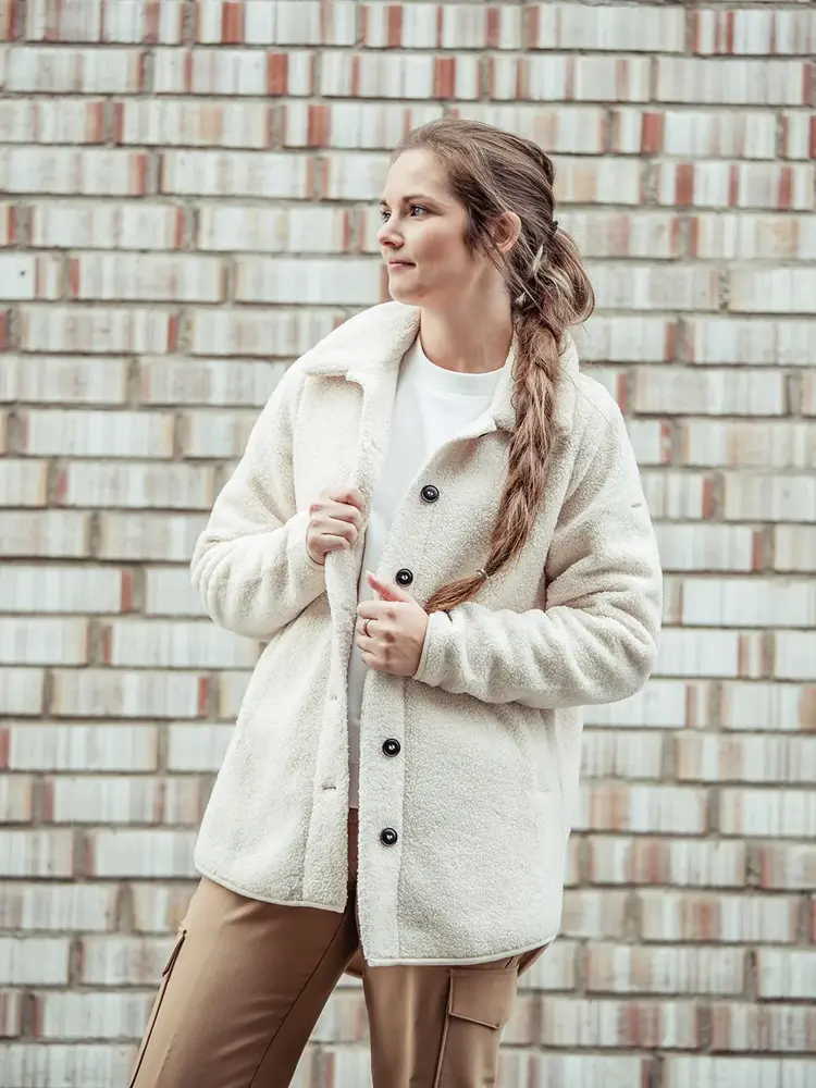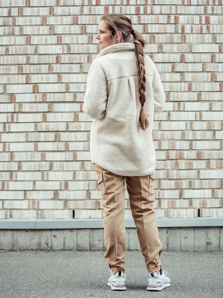 – Dette er en nydelig oversized kåpe som kan henge løst, er nøytral og passer til alt. Jeg liker den fordi den er klassisk og stilfull, men også praktisk og lun. Den er midt i blinken for kjøligere dager da du virkelig kan pakke deg godt inn i den. Vi ser mange kåper som er oversized denne høsten, det er helt på trend, komfortabelt og deilig. Vi får også inn mange kåper i teddy og ullkåper med klassiske snitt.