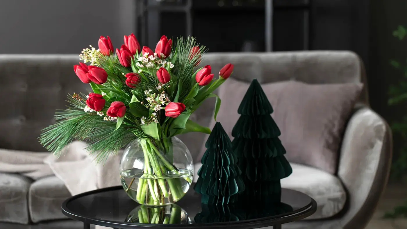 En vakker julebukett er alltid populært. Røde og hvite tulipaner er en juleklassiker, og amaryllis er julens dronning med sine vakre blomsterklokker. En bukett er også flott å ta med som en oppmerksomhet til vertskapet. Et lite tips er å levere blomstene på forhånd, så kan de brukes i pyntingen og stå klare på bordet når gjestene kommer.