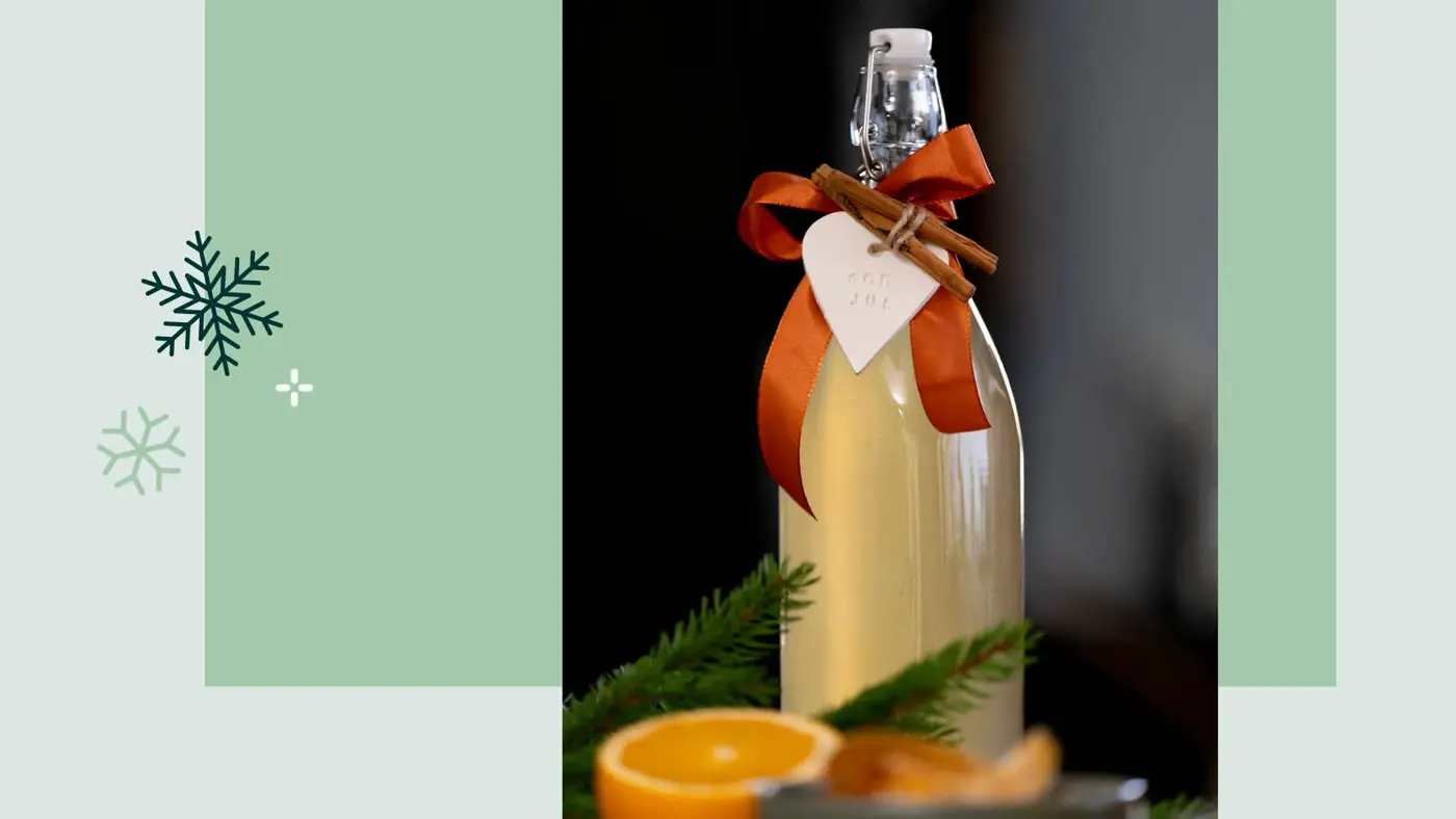 Skal du gi gløggen bort i gave? Pynt flasken med en fin sløyfe og hjemmelaget til-og-fra-lapp.
