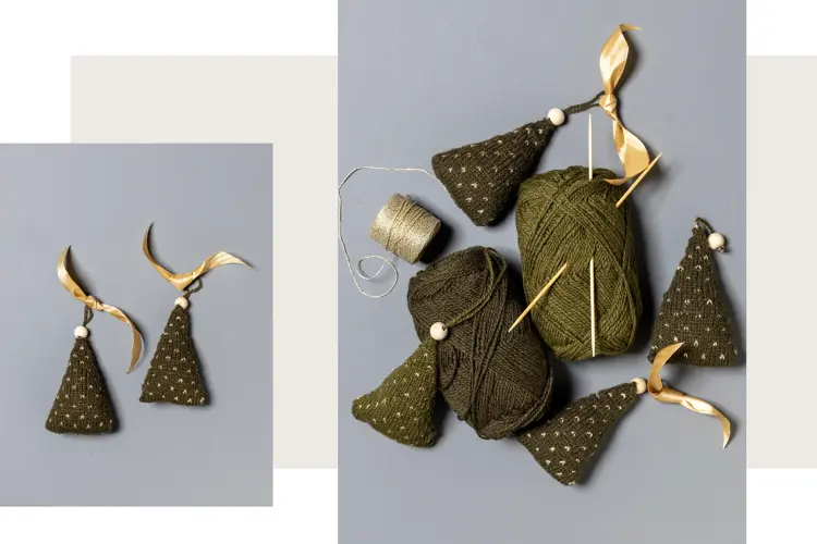 Trærne strikkes i glattstrikk fra toppen og ned, og formes ved å øke i hver side.