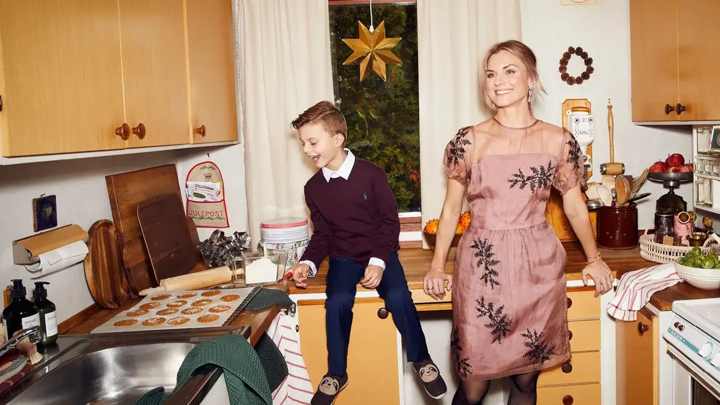 Mamma: Kjole fra Love Lolita/Me and My Cousin og Follestad, kr 2600,-// Øredobber fra CarolineSvedbom/Høyer, kr 2399,-// Ring fra Glitter, kr 99,-