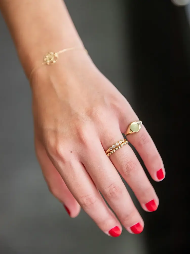 På hendene er det også more is more. Vi bærer gjerne ringer på mer enn én finger.