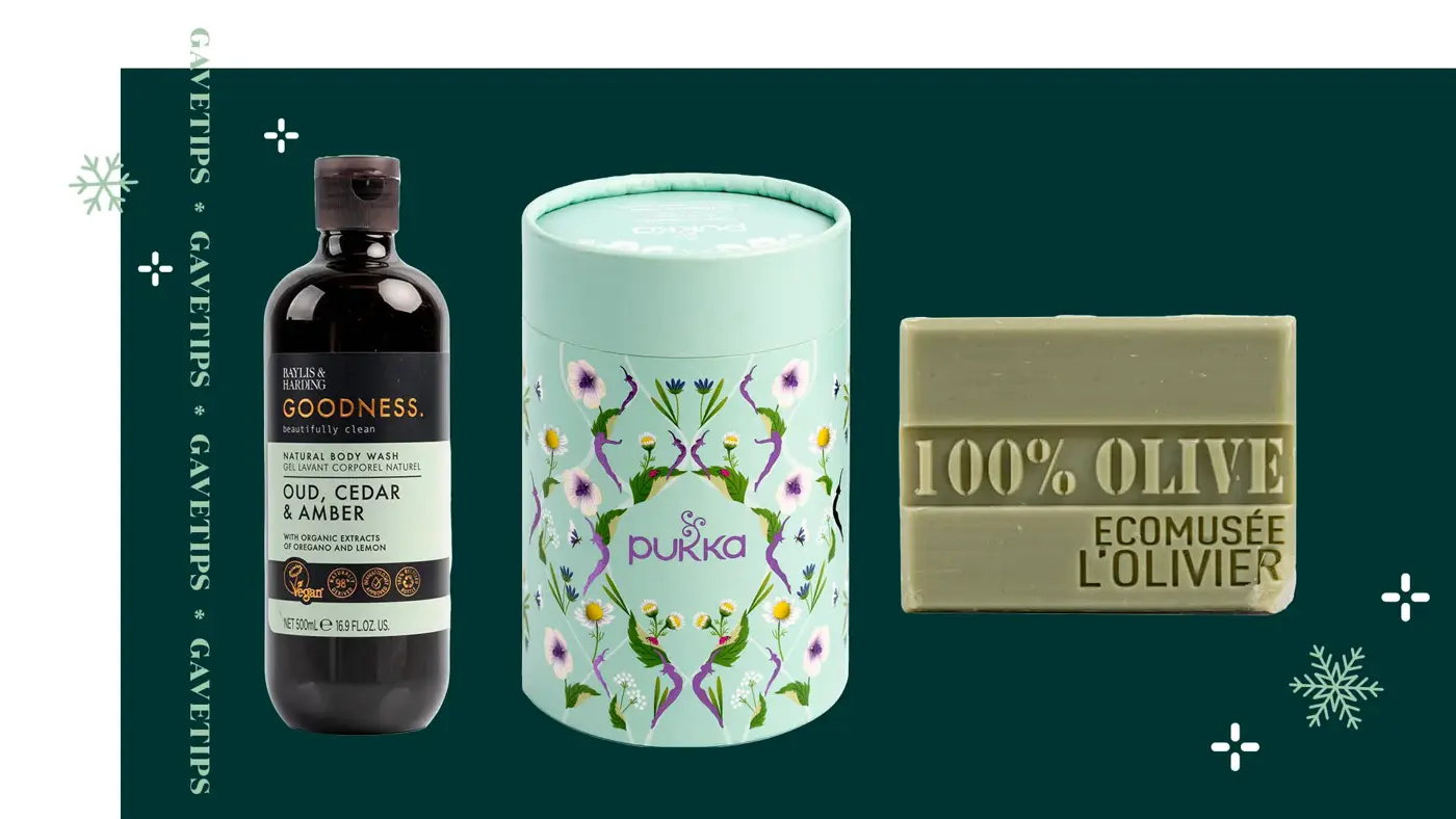 Sett sammen en deilig spa-pakke med god samvittighet til den heldige. Dusjsåpe finner du hos Home&Cottage, Olivensåpe får du hos Olivenlunden, og te fra Pukka finner du hos Meny.