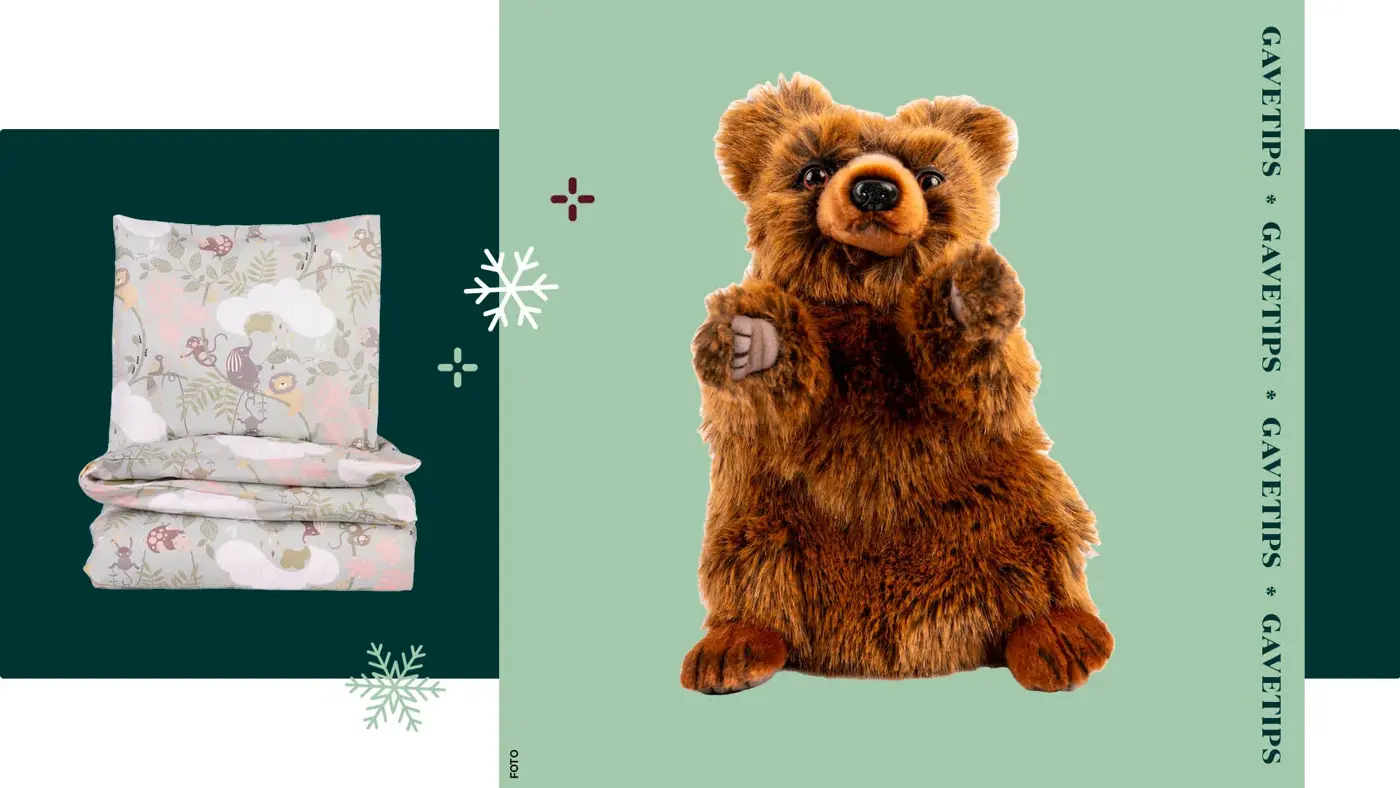Gjør rommet til den yngste litt mer lekent med et deilig sengesett fra Kid Interiør og en morsom fingerdukke fra Lekia.