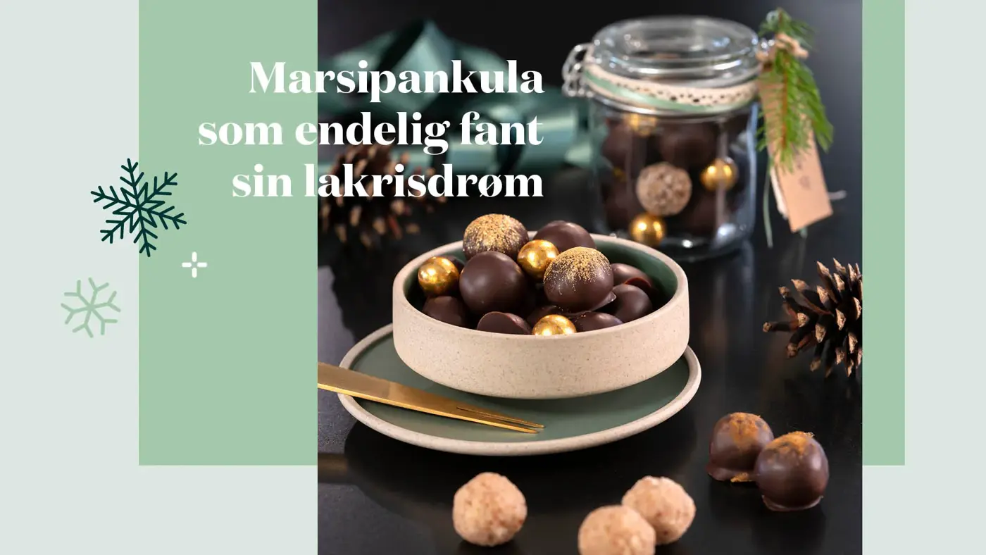 Ingen jul uten marsipan... Sier nå vi, da! Og er du glad i lakris og sjokolade, kan vi love deg at denne varianten blir en favoritt. Enten som julegave eller som snacks til julebordet.