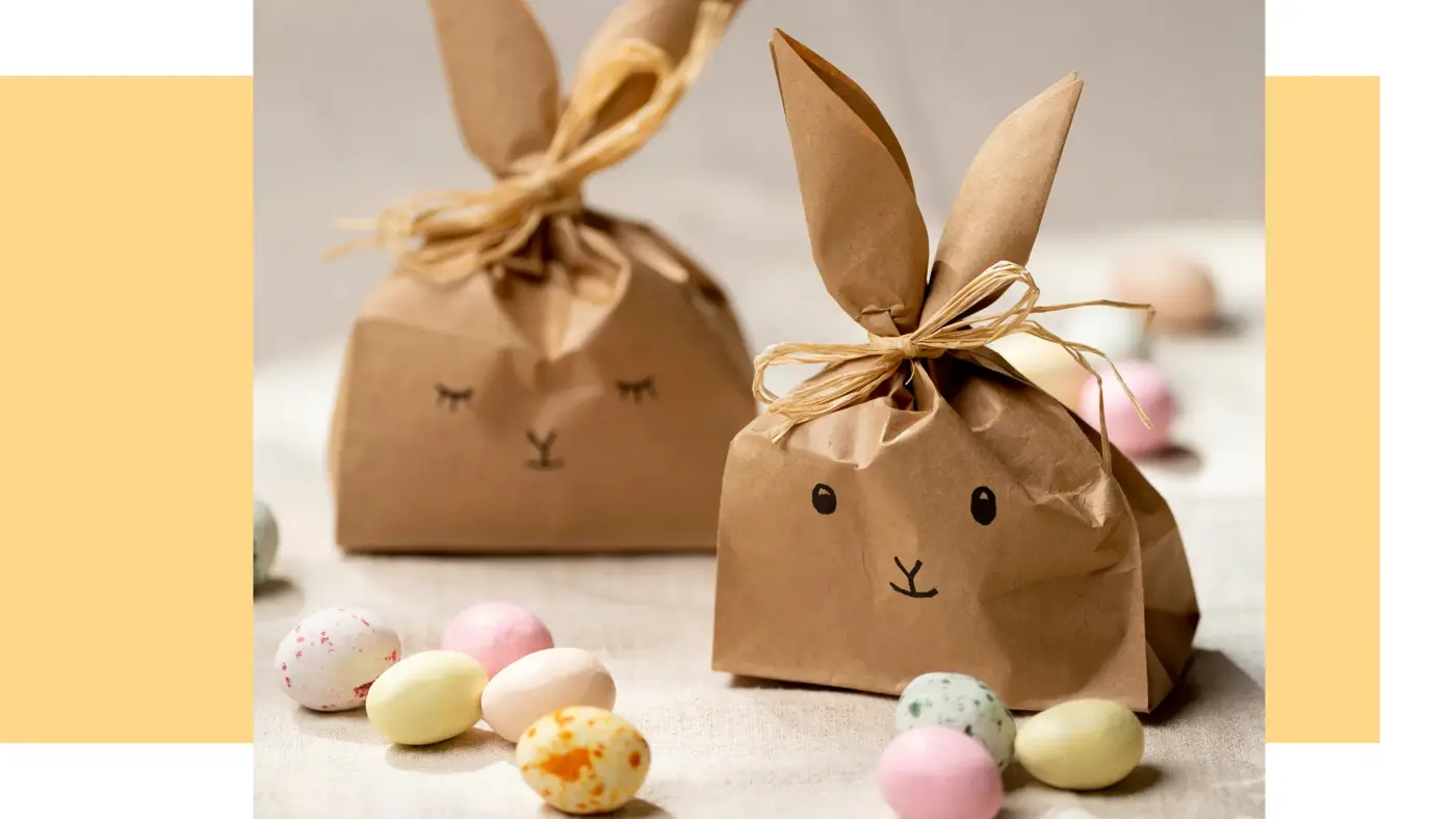 Sjekk disse skjønne! Om esken med påskeeggene skulle ha sneket seg unna der inne i boden, eller du bare har lyst på litt variasjon, er disse hjemmelagde påskeposene et superkoselig alternativ. Det eneste du trenger er brune papirposer, litt hyssing, saks og tusj.