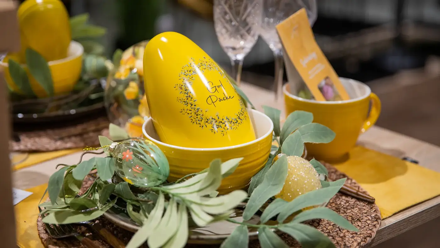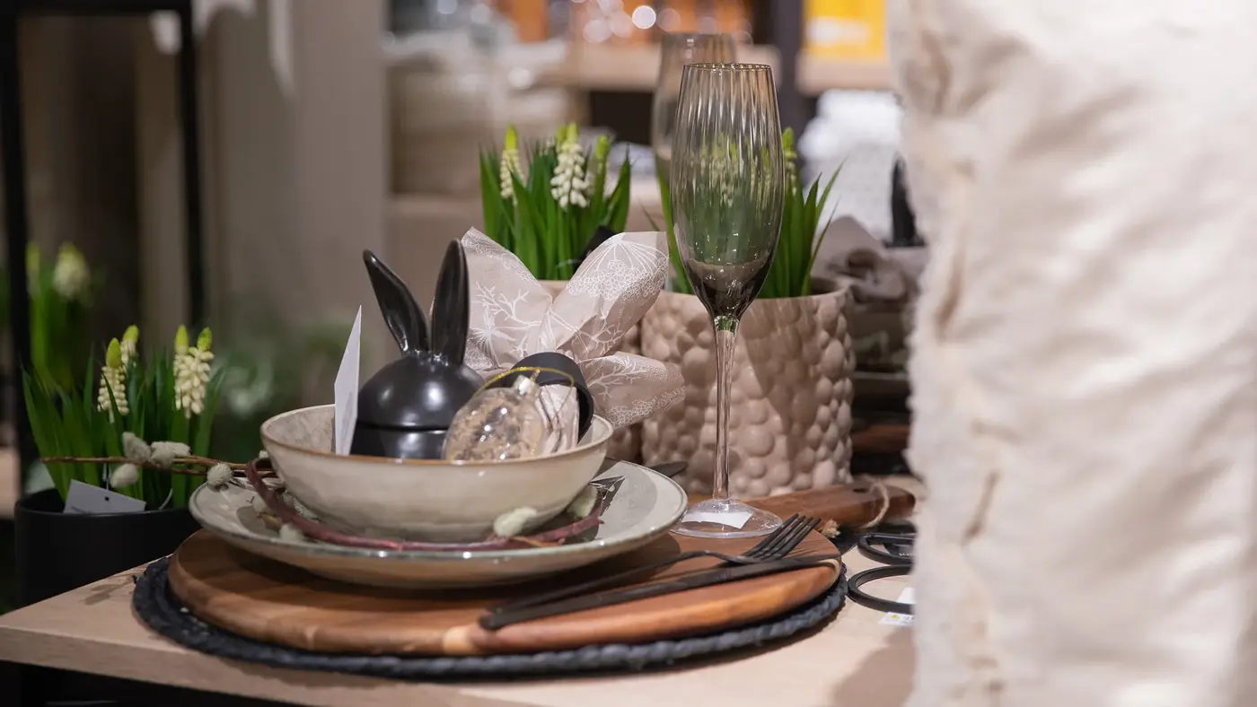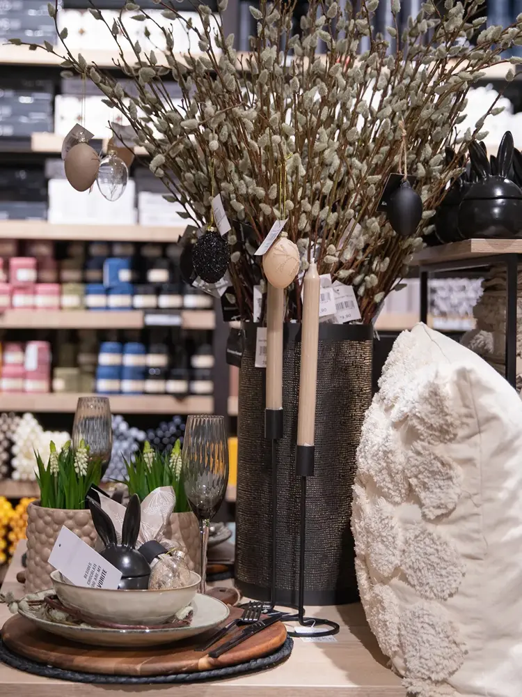 Granit er kanskje butikken som i størst grad har utfordret den gule påsketradisjonen. Der kommer årets dekorelementer i jordfarger og de gule lysene i en dempet gultone. Trenden er minimalistisk, enkel og har fokus på naturelementer, nøytrale egg og stilleben du kan lage selv.