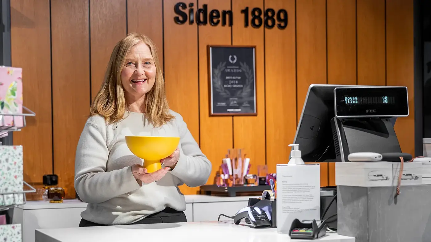 Hos Kremmerhuset har butikkleder Madde iført seg en gul blazer, men det er ikke utelukkende fordi påsken snart står for tur.