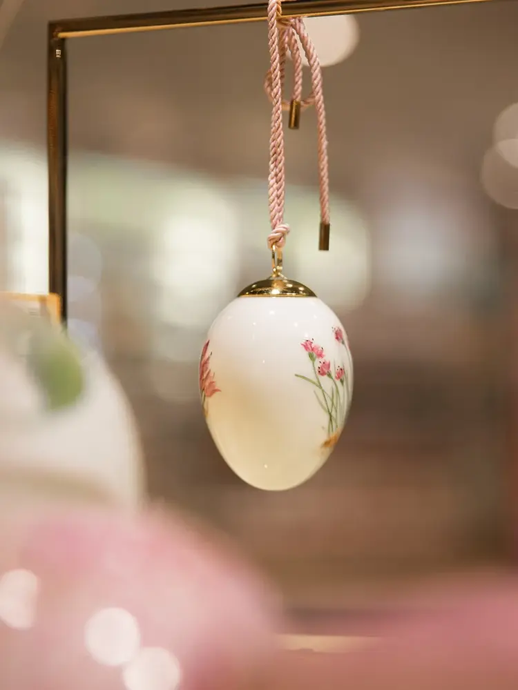 – Våre håndmalte egg fra Royal Copenhagen er et eksempel på dette. De kommer inn i nytt design hvert år, forteller Lena hos Backe i Grensen. Hun viser også frem polsk påskepynt laget spesielt for kjeden, et smykke i seg selv. – Både eggene og denne påskepynten kan henges opp overalt, i vinduer og som anheng på kvister. Veldig anvendelig og dekorativt!