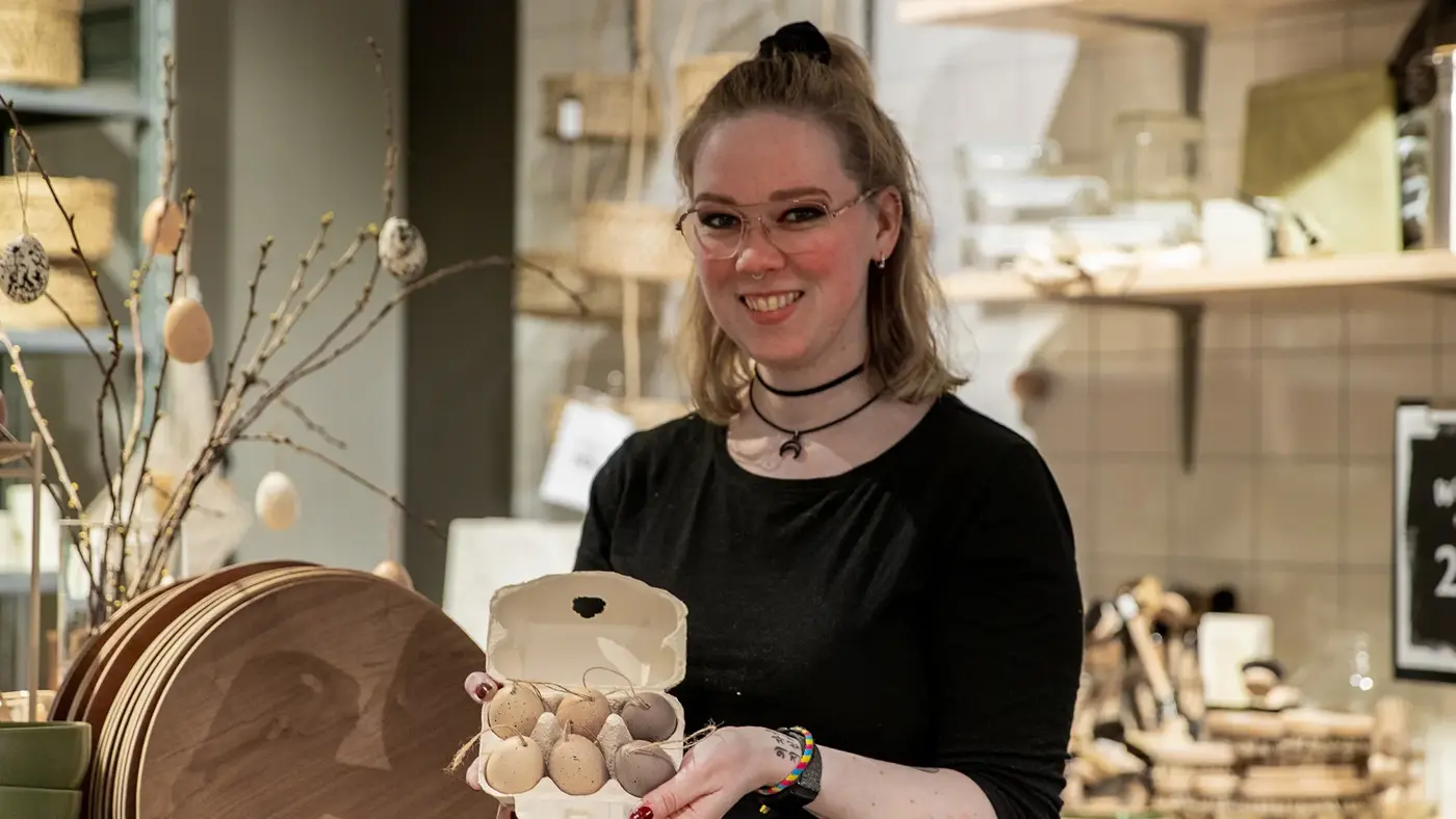 Lena mener kundene stadig blir mer kreative og finner nye måter å dekorere til påske på, som å finne gul dekor som kan funke hele året – ikke bare til påske.