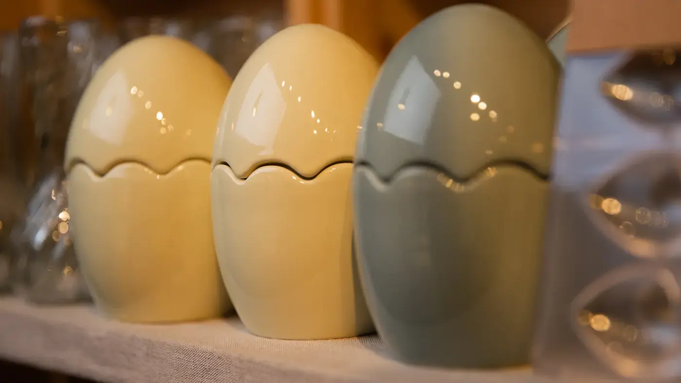 Hos Backe i Grensen får påskehøytiden plass i form av lekre dekoregg, fargesterke tekstiler og gule interiørelementer som også kan brukes utenfor påskehøytiden. Kundene etterspør stadig mer delikat påskepynt, som matcher et allerede stilrent hjem.