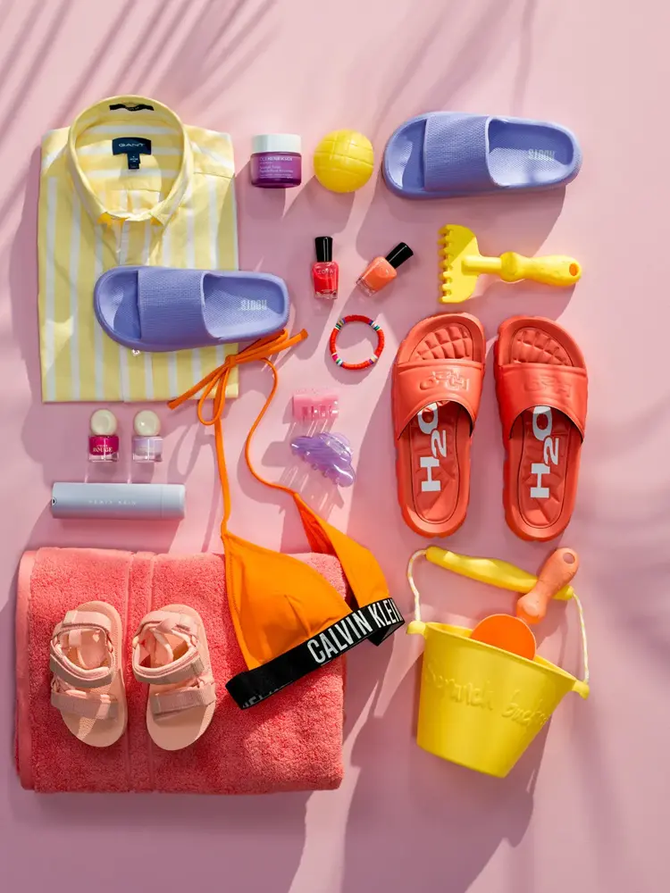 Solkremen finner du hos Fredrik&Louisa og VitusApotek, som begge har et bredt utvalg for ansikt og kropp. Du finner sandaler og sommersko hos blant annet Grændsens Skotøimagazin, Kappahl og Brando.