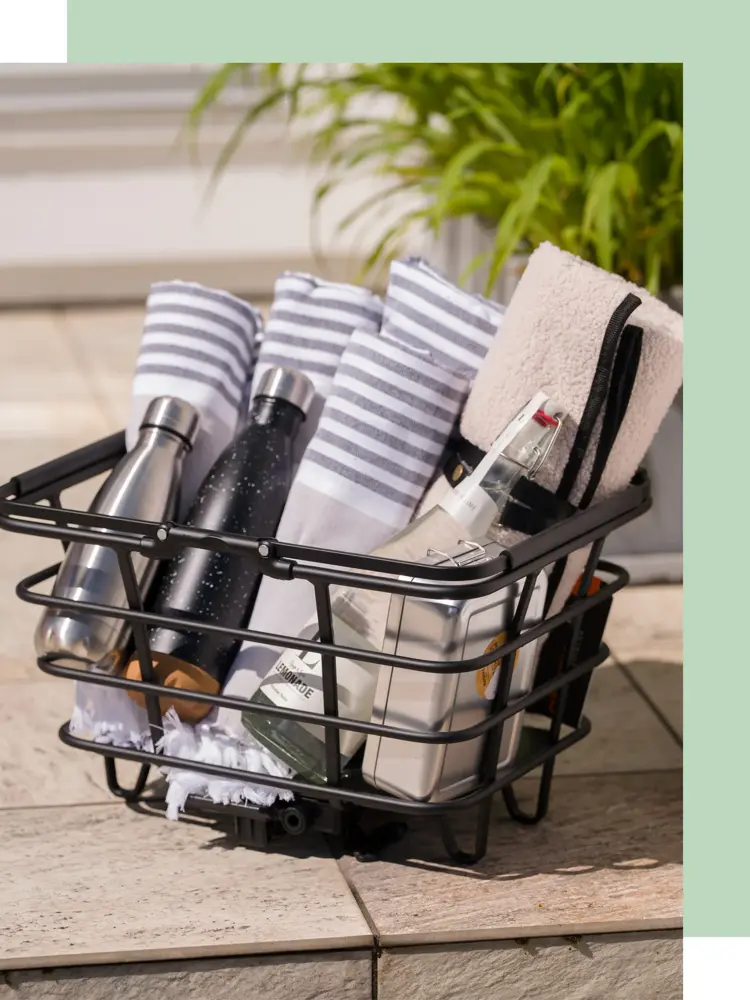 Ingen grunn til å slite seg ut nå som det er sommer. Vi heier på slentre-sykling med kurven full av badehåndklær og godsaker. Hva med en sykkelkurv du enkelt klipser på bagasjebrettet.
