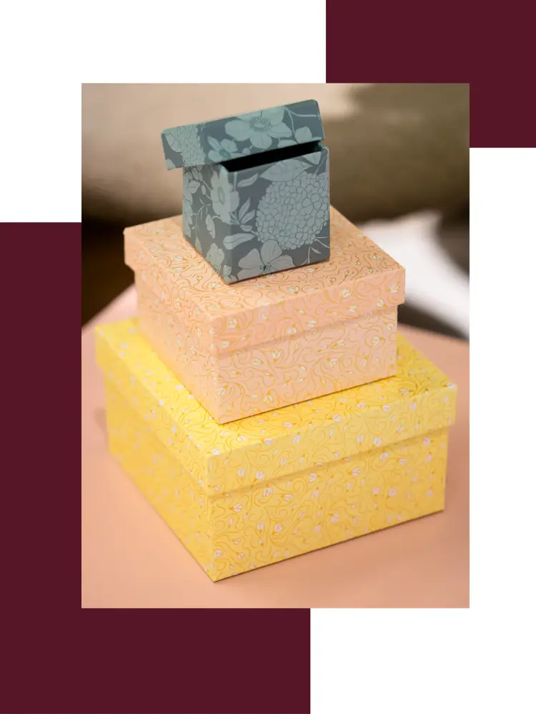 (Gavene skal ikke pakkes inn, men legges i gaveboksen).