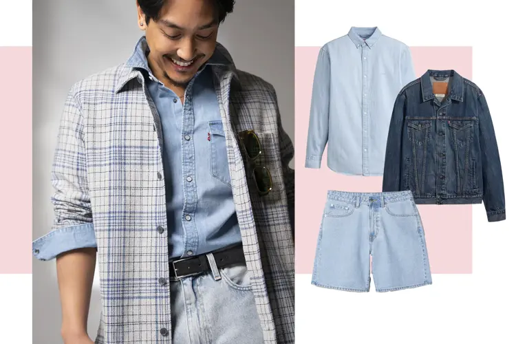 Daniel i to av sesongens store trender, ruter og denim on denim. Miks ulike vasker for et kult uttrykk med dobbel dongeri.