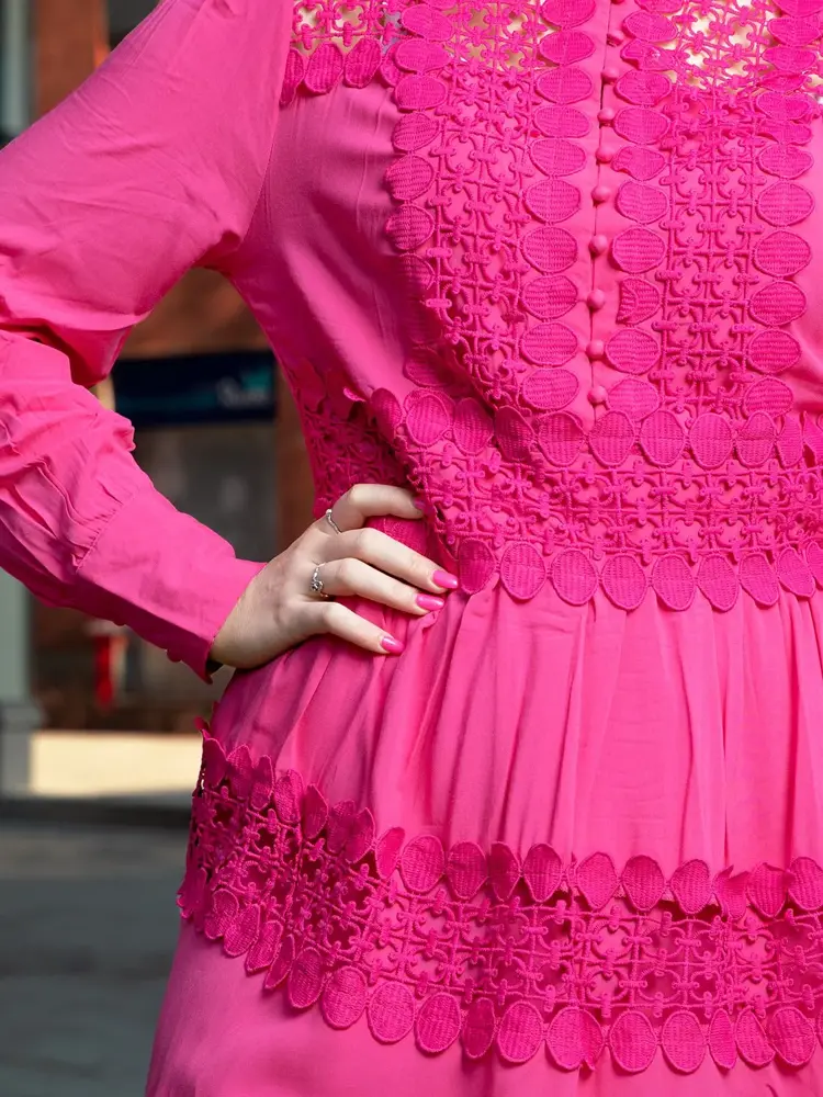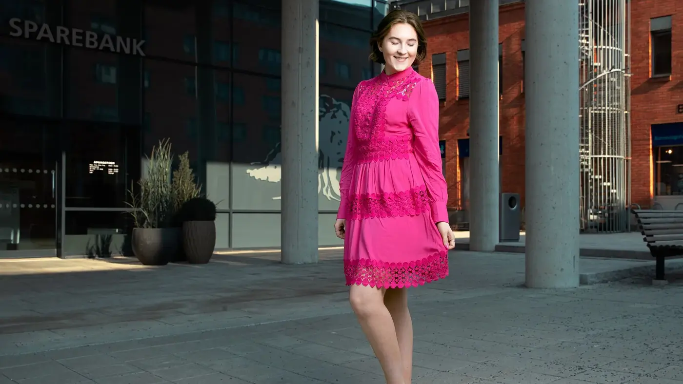 – Vi valgte denne delikate kjolen fordi den skiller seg ut, kan brukes til flere anledninger og fordi den er helt nydelig, forteller Eline hos Høyer. – Den er svært aktuell i sesongen vi nå går inn i fordi den kan styles opp til et bryllup, samtidig som du også kan bruke den som en hverdagskjole med sneakers til.