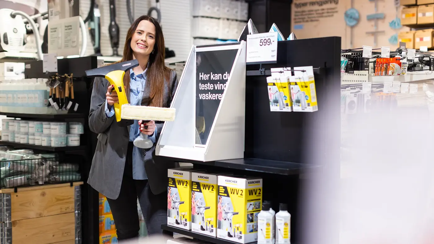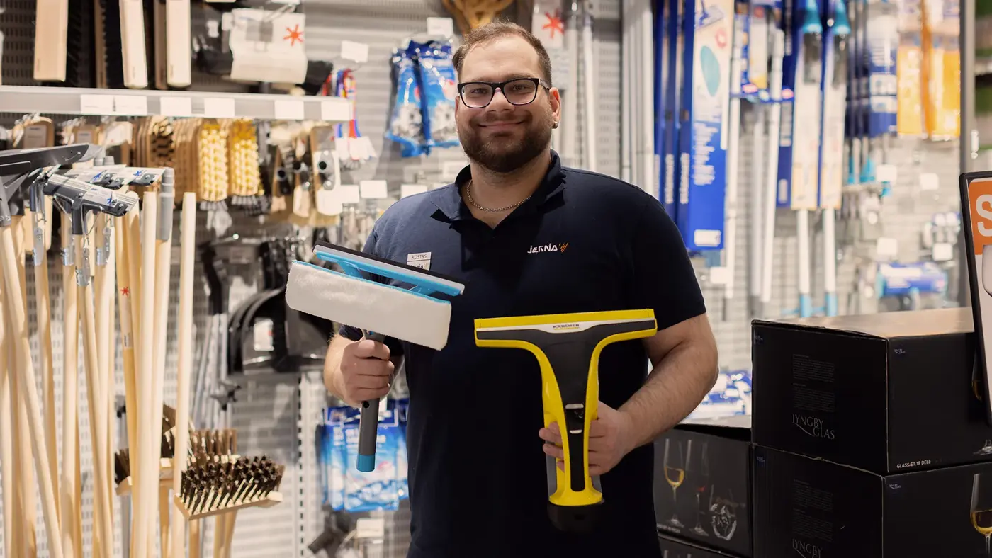 – Den største nyvinningen innen vindusrengjøring siste årene er nok den elektriske vindusvaskeren fra Kärcher, forteller Carina hos Clas Ohlson og Kostas hos Jernia. Vindusvaskeren fungerer som en elektrisk nal, som fanger opp alt såpevann og gjør vinduene skinnende rene. Såpen sprayes enkelt på i første runde, før nalen føres over i én bevegelse.