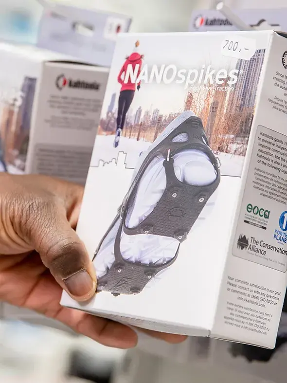 - Mange kommer hit med enten godt brukte eller nye joggesko og får dem pigget av oss, men du kan også kjøpe et sett med pigger her og pigge skoene selv. Da er det gjerne seks pigger foran og fire pigger bak og de fungerer på de fleste mengdetreningssko med gode såler, forteller Amadou og fortsetter: