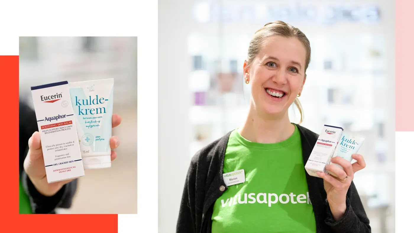 – Uansett hvor godt man smører og fukter huden, vil man likevel risikere noe frostskader dersom man er lenge ute i kulda. Smør deg godt med en fet krem også når du kommer inn, og skaff deg en gjerne en beroligende salve for irritert, tørr og sprukken hud. Den kan komme godt med også på hendene, sier apotekteknikeren.